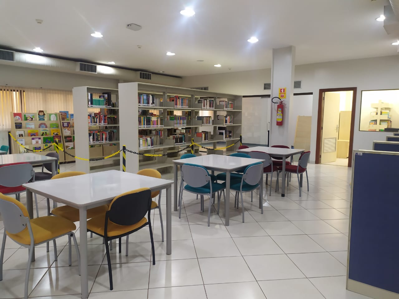 Espaço para estudos Consulta local de livros, jornais e revistas Acervo com mais de 26 mil títulos para empréstimo Mesas e bancadas com pontos de conexão de energia Computadores com acesso à internet Programações literárias; Gibitecas (Histórias em Quadrinhos).